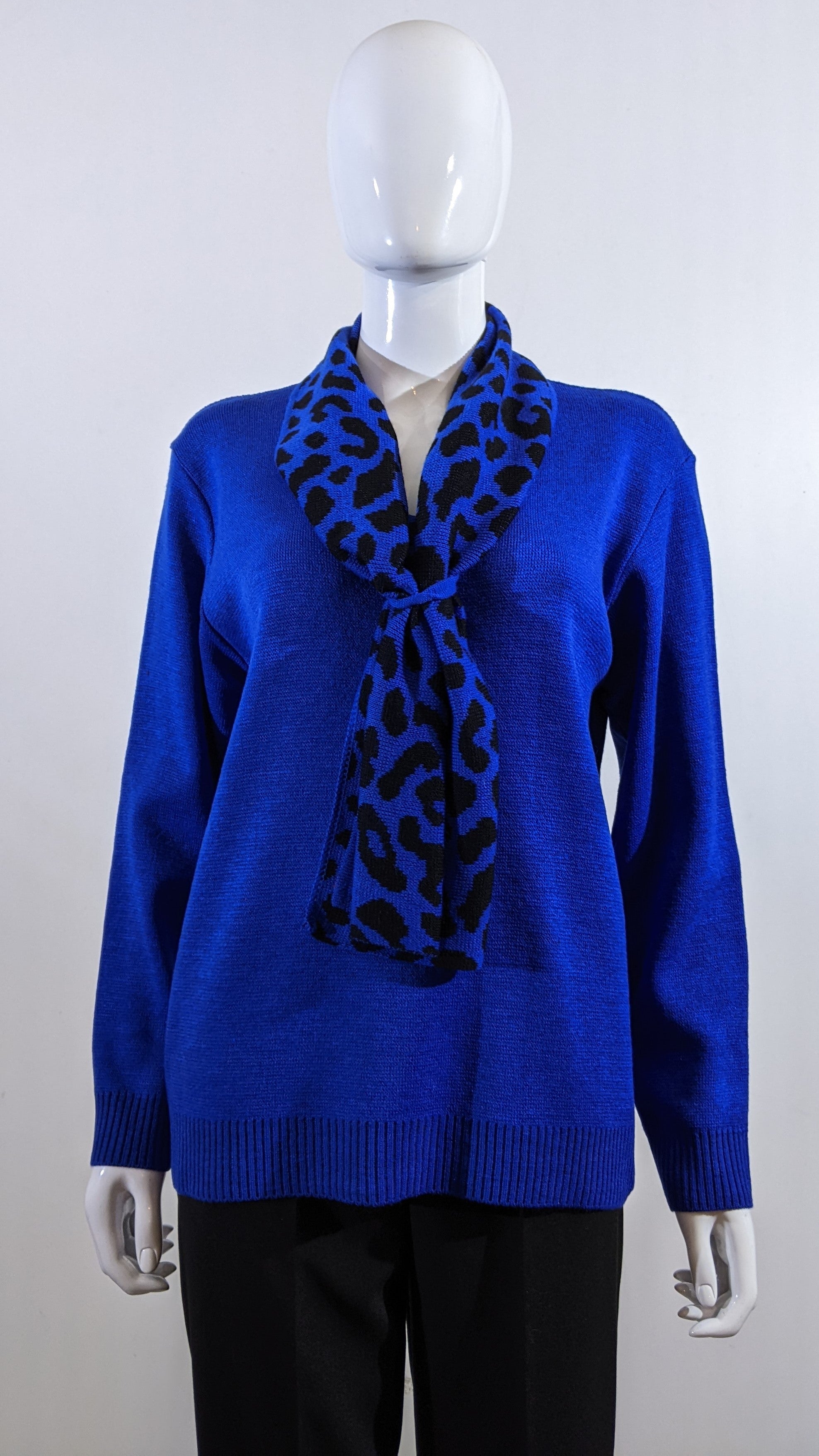 Royal Blue Leopard Pattern Scarf Jumper