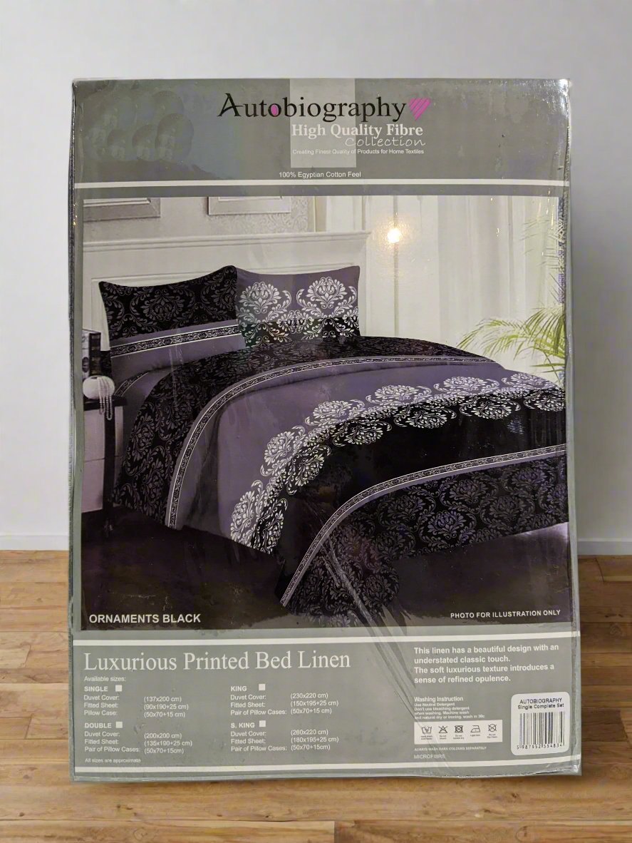 Black Pattern Luxury Microfibre Single Complete Duvet Cover Set