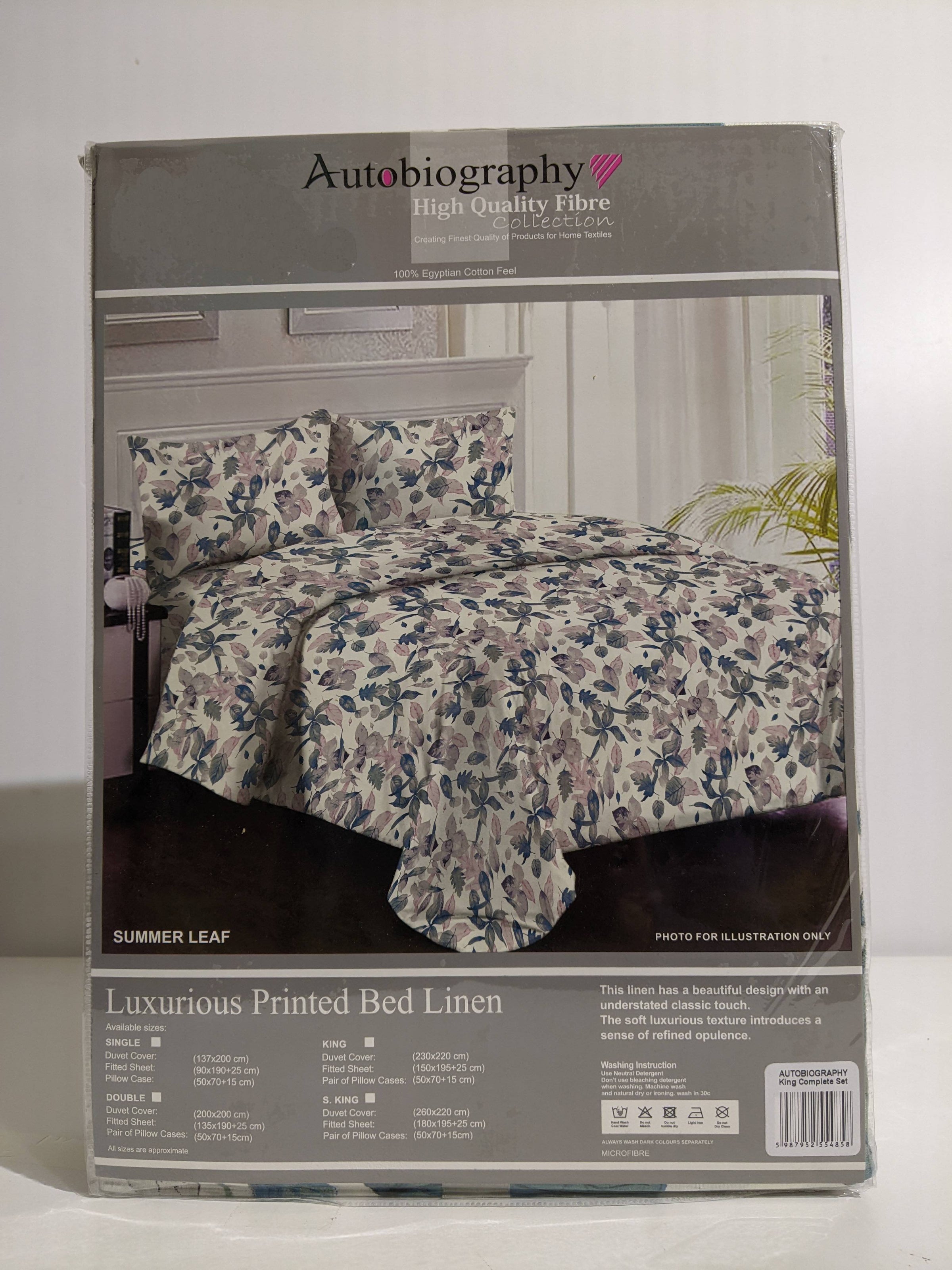 Dimensions are as follows (approx.)- 1 Duvet Cover 230x220cm, 1 Fitted Sheet 152x195+25cm, 2 Pillow Cases 50x70+15cm