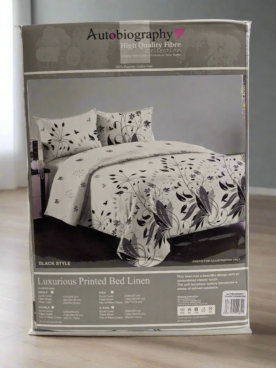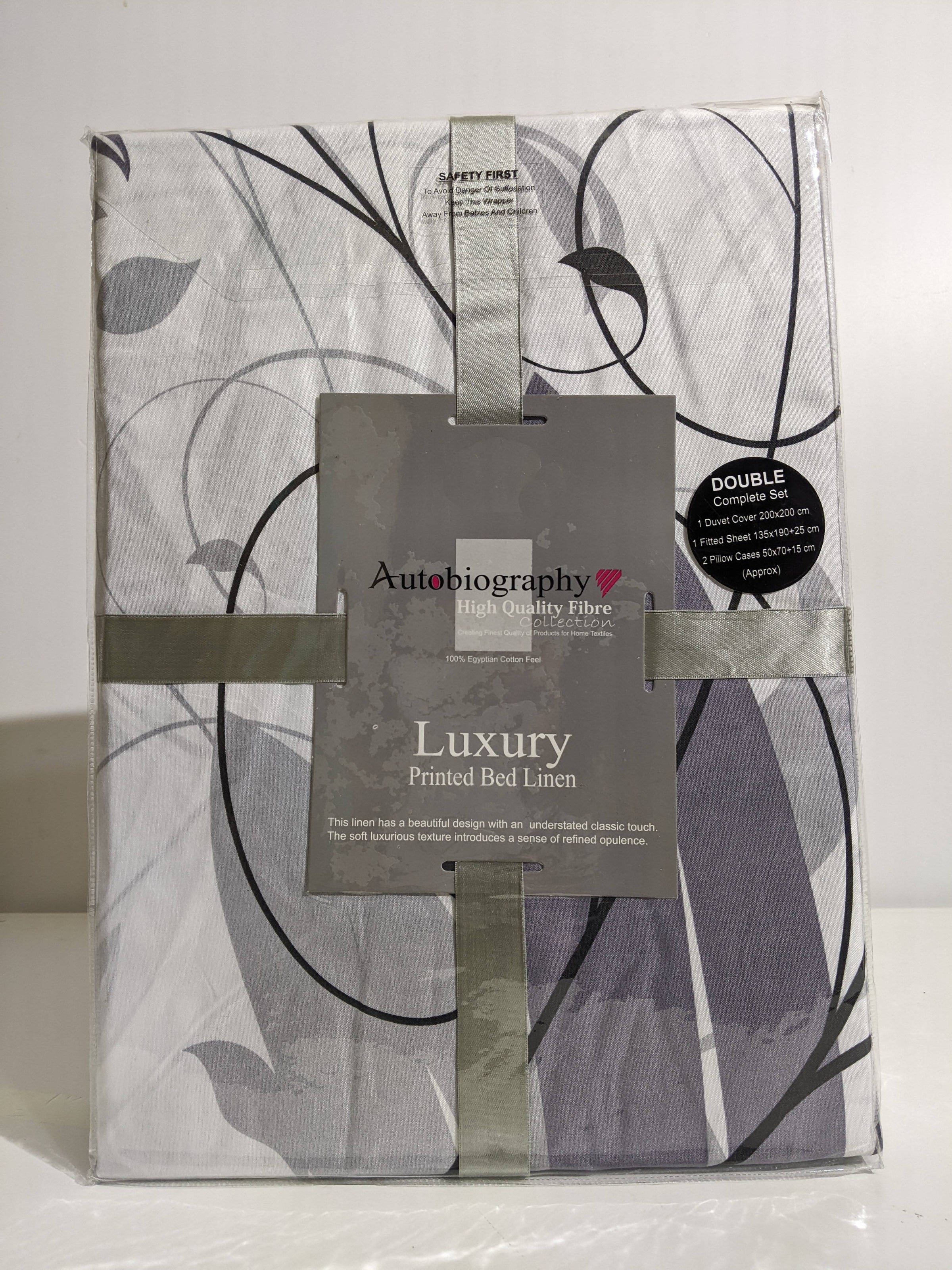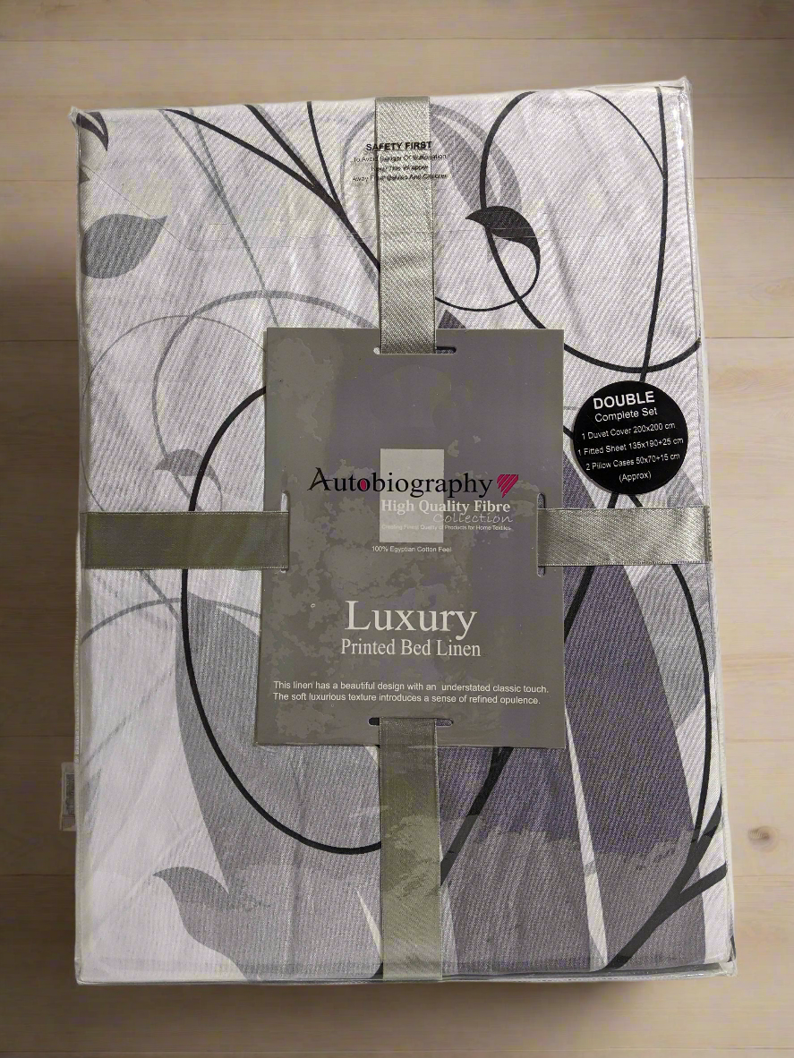 - Grey & White Luxury Complete Double Duvet Cover Set