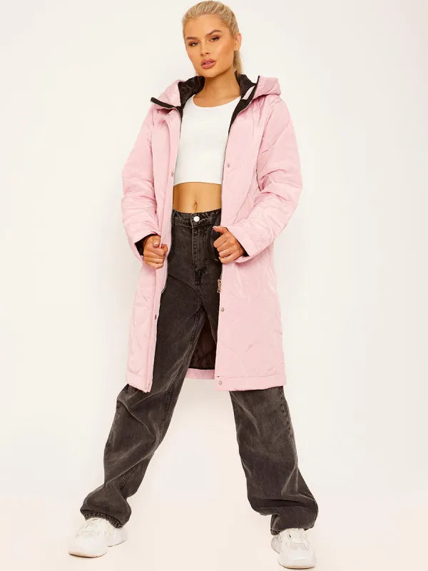 • Pink Onion Quilted Long Sleeves Longline Hooded Coat